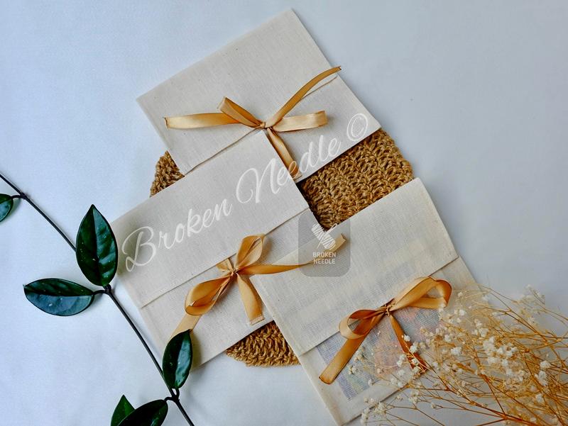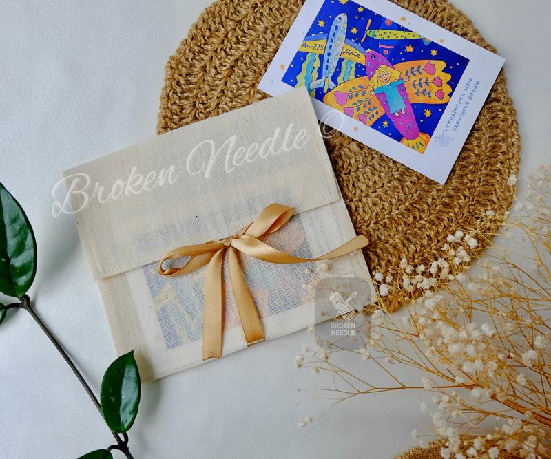 Текстильний подарунковий конверт-мішок, зав'язки з атласної стрічки.