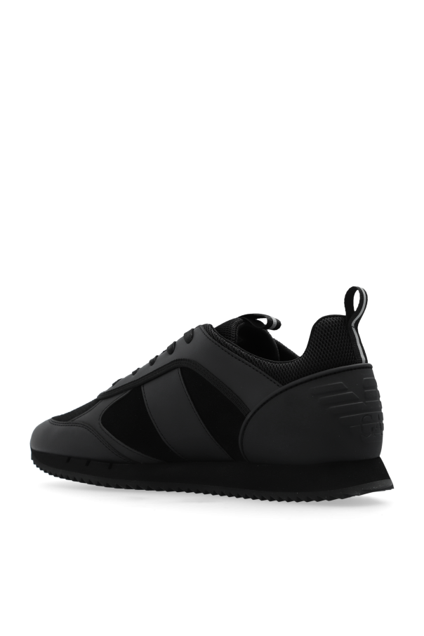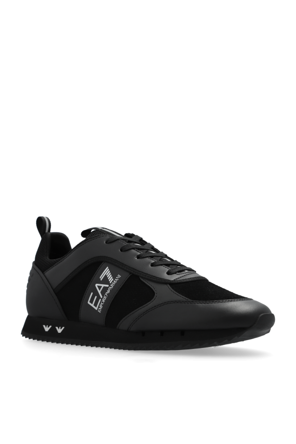 Introducing the pinnacle of athletic elegance, the EA7 Emporio Armani Low-Top Sneakers from the exclusive collection of the renowned designer. These black sneakers epitomize sophistication and practicality, tailored for the modern gentleman. The classic low-top silhouette, crafted from a blend of smooth leather and breathable mesh, ensures both comfort and durability. The dominant black hue is accentuated by subtle contrasting elements, featuring the iconic EA7 Emporio Armani logo prominently on the side, heel, and tongue. A loop at the back enhances the ease of wearing, while the rubber outsole with a serrated pattern guarantees exceptional grip. Why Choose This Product? Timeless Design: Classic low-top shape, perfect for any occasion. Premium Materials: Combination of leather and mesh for comfort and longevity. Signature Branding: Distinctive EA7 Emporio Armani logos for a touch of luxury. Enhanced Functionality: Serrated rubber outsole for superior traction. Custom Fit: Traditional lacing system for personalized comfort.