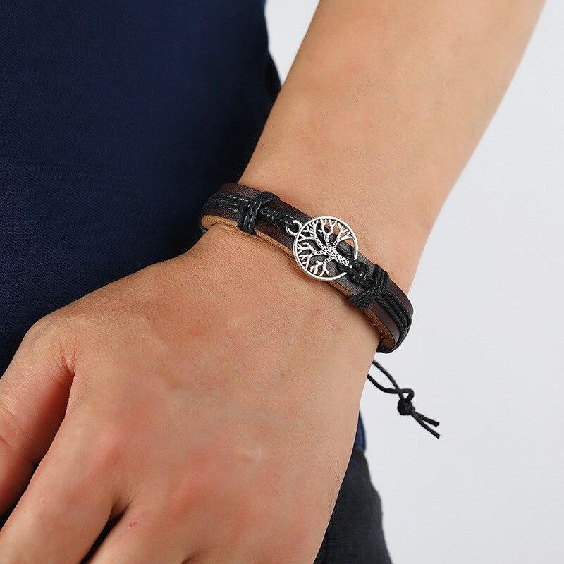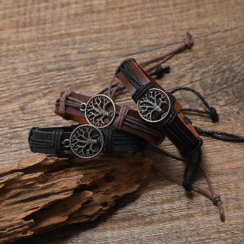 Браслет Дерево Жизни изготовлен из натуральной кожи. Металлические вставки на