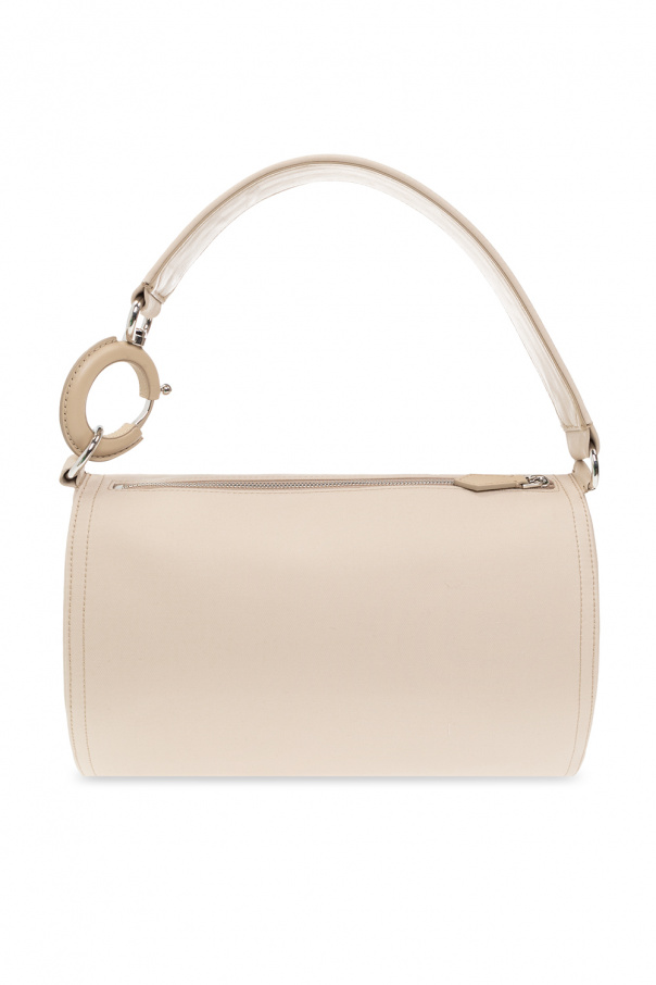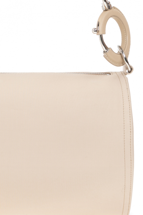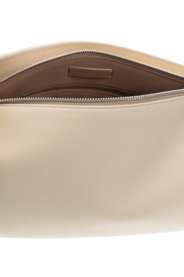 Light beige ‘Rhombi Small’ hobo bag from Burberry. Crafted from cotton canvas, this model features a silver-tone logo print, decorative shoulder strap with a round snap hook, silver-tone metal hardware and one internal compartment with one slip pockets.