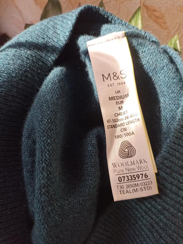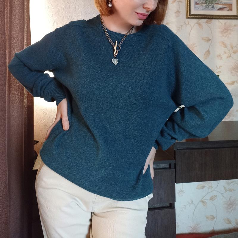 Теплый джемпер в красивом цвете морской волны от M&S. В составе 100% шерсть. Немного пушистый, теплый и приятный к телу.