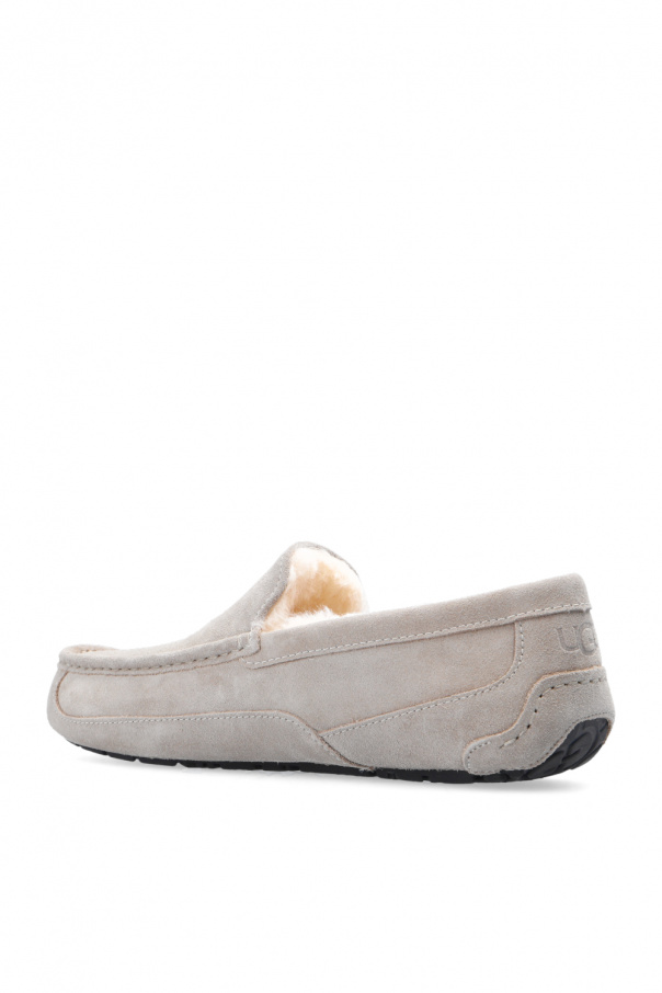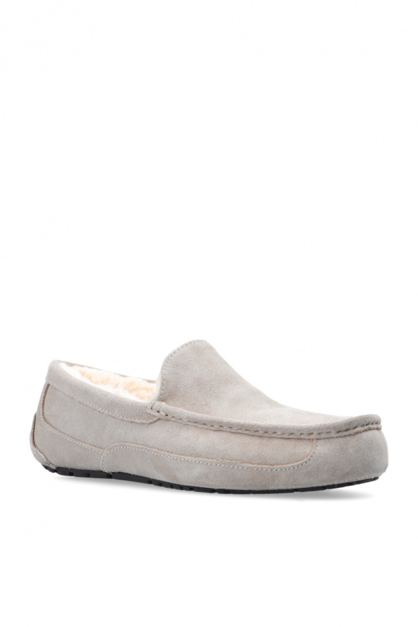 Greyish beige ‘Ascott’ slippers from UGG. Made of suede, this model features an embossed logo at the back, UGGpure™ insole with water repellency treatment and a dark brown rubber sole accentuated with a logo.