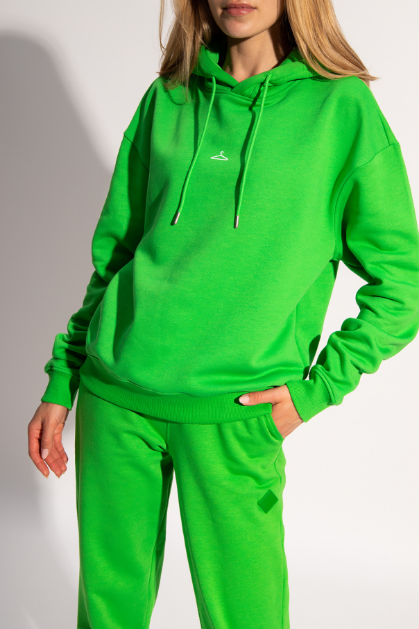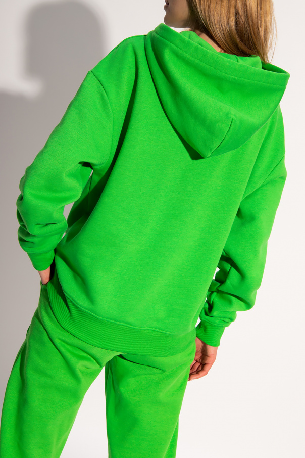 Green sweatshirt from Holzweiler. Made of organic cotton, this garment features a printed logo pattern in white, drawstring hood and ribbed trims at the hem and cuffs.