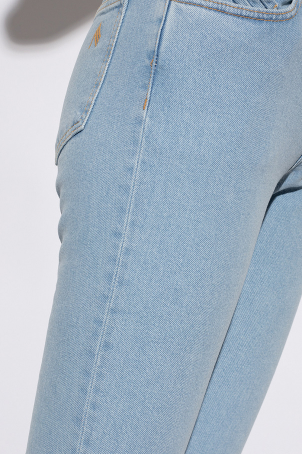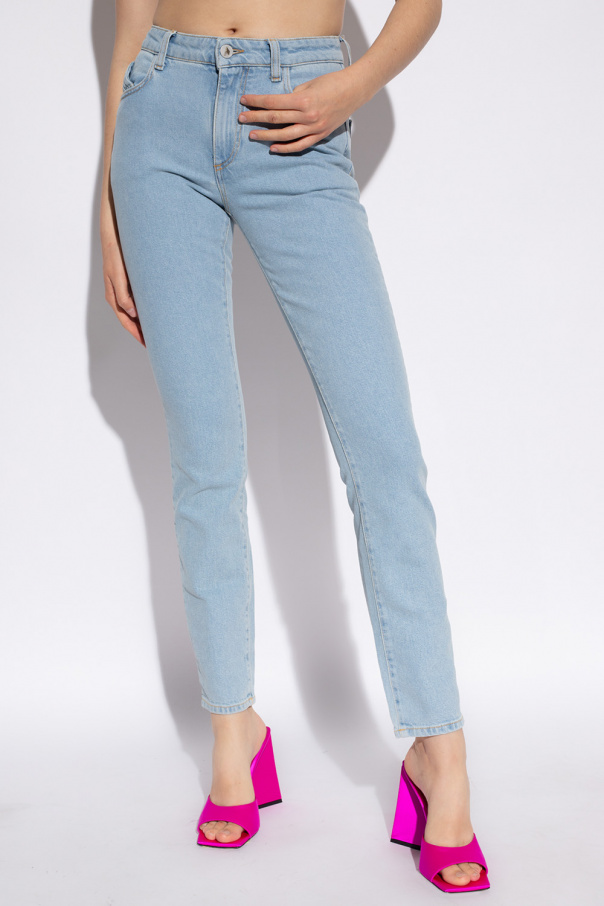 Light blue jeans from The Attico. Designed with a skinny fit, this pair features a zip fly with a button, classic five pockets and an embroidered beige logo on the back.