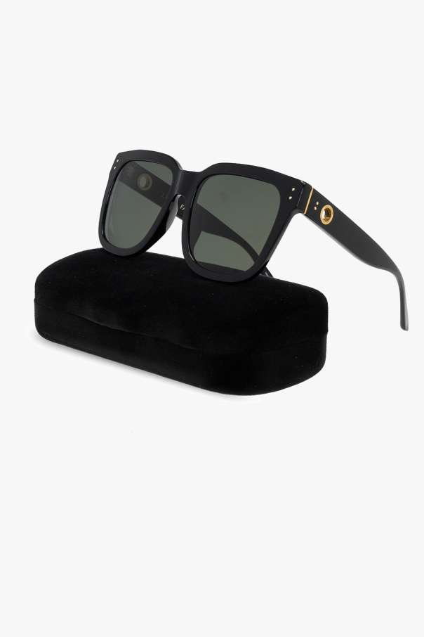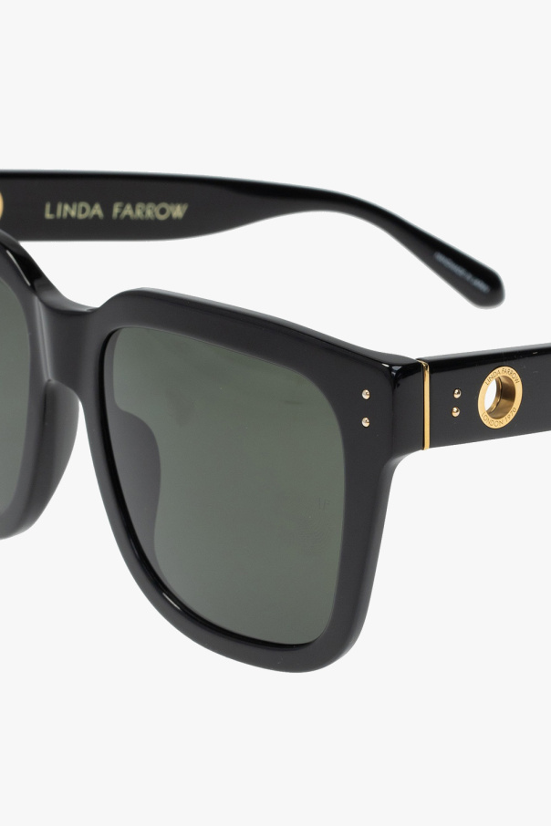 Black sunglasses from Linda Farrow. Decorated with an embossed logo detail, this model features a gold-tone metal hardware and certificated dark green lenses with 100% UVA/UVB protection. Case included.