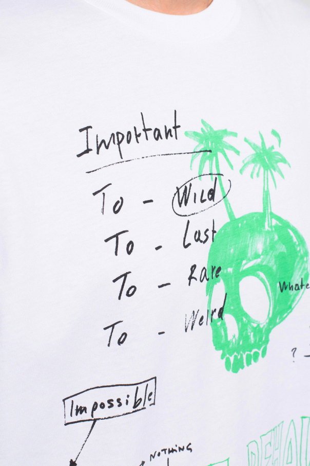 White T-shirt from Diesel. Made of cotton, this short sleeve design features a printed logo in green and black as well as a ribbed round neck.