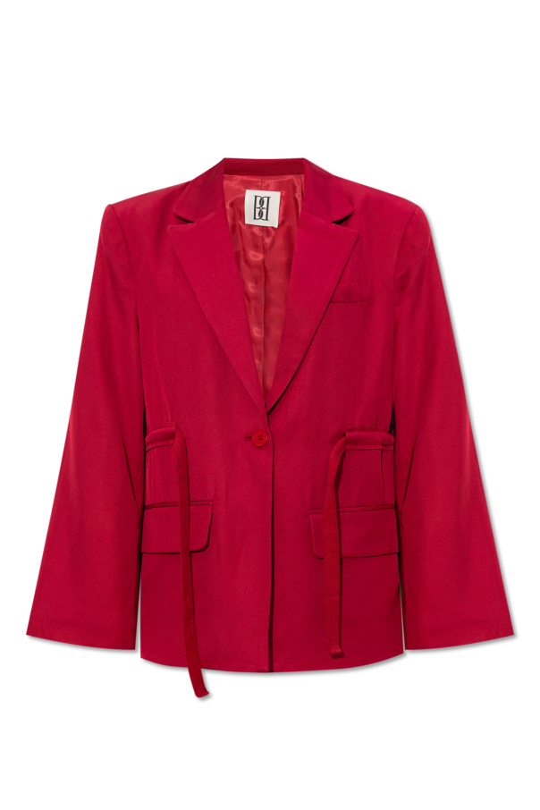 Red ‘Biento’ blazer from By Malene Birger. Cinched with drawstrings at the waist, this style features a single back vent, button fastenings, one welt pocket, two flapped pockets and long sleeves.