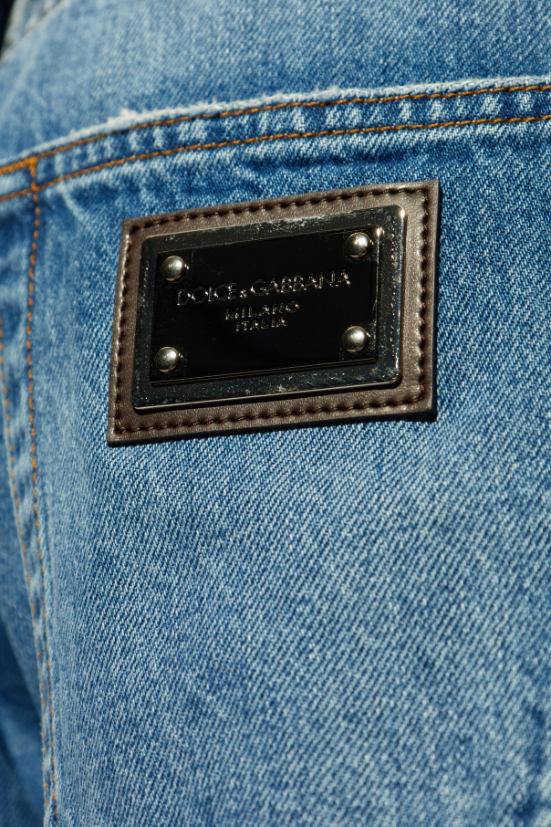 Introducing the quintessence of denim craftsmanship - the Blue Pocketed Jeans by Dolce & Gabbana. Rendered in a spectrum of blue hues, these jeans are artfully distressed, achieving a subtly aged effect that exudes casual sophistication. Crafted from premium cotton denim, the fabric\'s inherent texture is highlighted, offering both durability and comfort. The silhouette of these jeans is a nod to timeless style, featuring a classic, straight-leg cut that ensures a regular fit throughout. Detailing includes standard belt loops, a metal button closure, and riveted pockets for a hint of industrial chic. A standout feature is the leather patch on the rear pocket, adorned with a metal plaque bearing the Dolce & Gabbana logo, a testament to the brand\'s luxury heritage and attention to detail. Whether showcased on a model or standing alone, every angle reveals the meticulous design and quality that Dolce & Gabbana is renowned for. The close-up of the leather patch, in particular, underscores the exclusivity and high caliber of these jeans. Why Purchase This Product? Superior Quality: Made from 100% cotton denim, ensuring durability and comfort. Timeless Design: Classic straight-leg cut with a regular fit, suitable for various body types and styles. Exquisite Detailing: Features like the branded leather patch elevate these jeans beyond the ordinary, making them a statement piece. Versatile Style: The artful distressing and range of blue tones make these jeans a perfect match for both casual and semi-formal outfits.