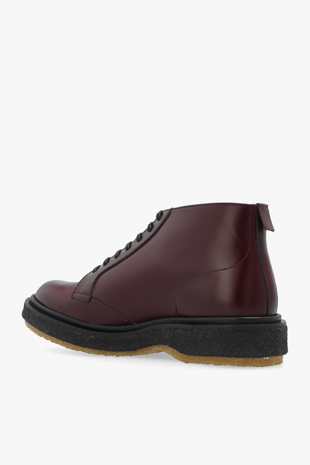 Maroon ‘Type 77’ ankle boots from Adieu Paris. Crafted from smooth leather, this lace-up model sits on a beige and black rubber sole.
