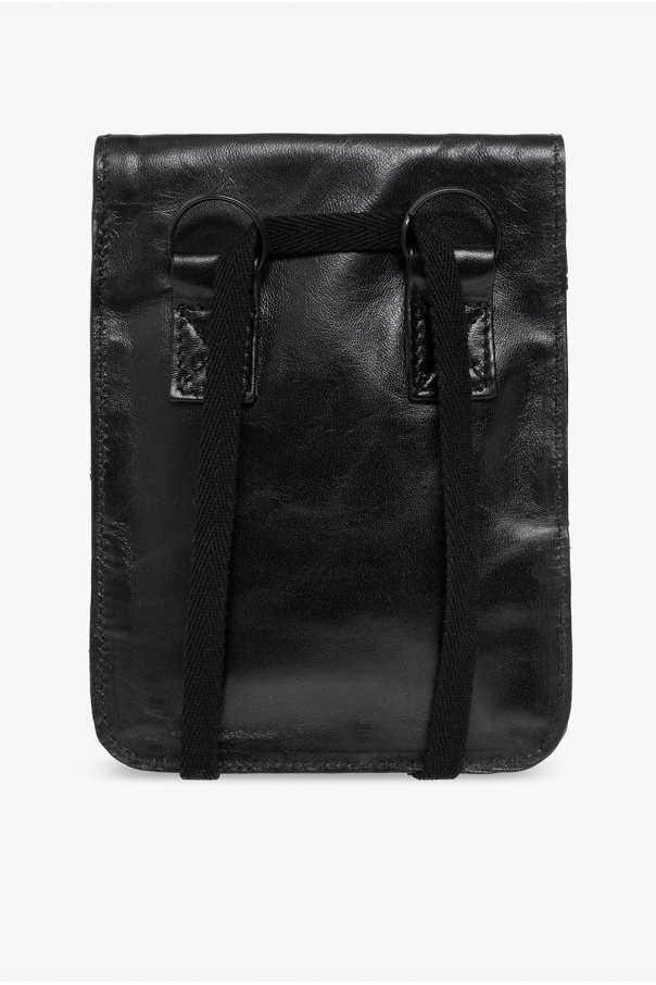 Black ‘Talia Mini’ shoulder bag from Ann Demeulemeester. Crafted from leather, this design features a flap with adjustable snap closures, a distinctive keyring accompanied by a snap-fastened belt on the front, a shoulder strap, black metal hardware and one internal compartment.