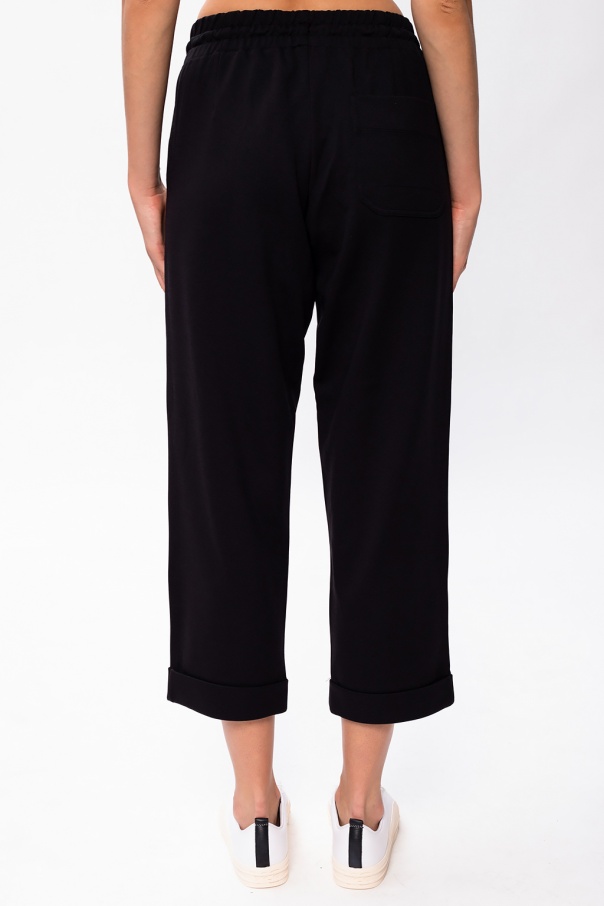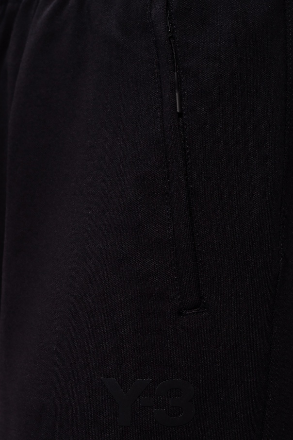 Black sweatpants from Y-3 Yohji Yamamoto. This tapered leg design features an elastic waistband with drawstrings, logo print, two zip pockets on the front, slip pocket at the rear and turn up cuffs.