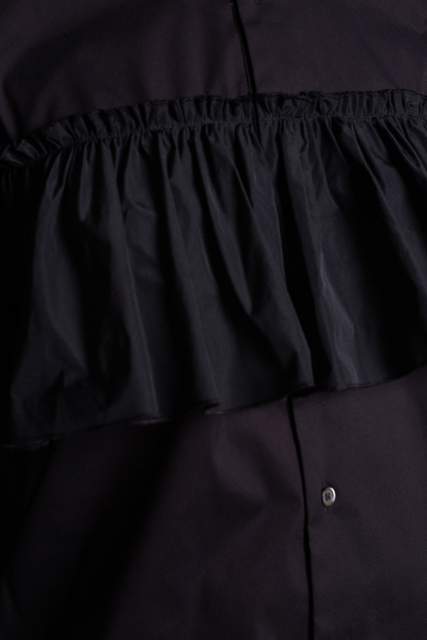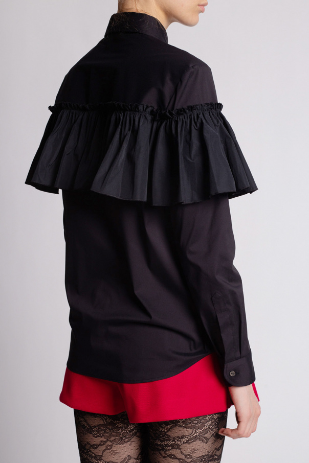 Black shirt from Red Valentino. Made of cotton, this style fastens via buttons and features ruffled detailing and long sleeves with button cuffs.