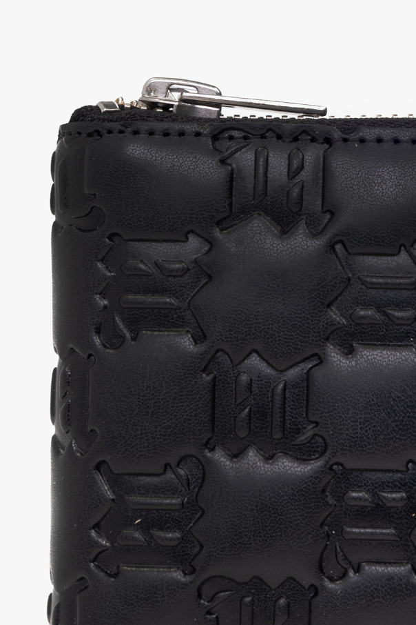 Black wallet from MISBHV. Made of leather, this item fastens with a zip and is enriched by a quilted monogram pattern. It has a bill compartment, snap-fastened coin pocket, slip pocket and three card slots.