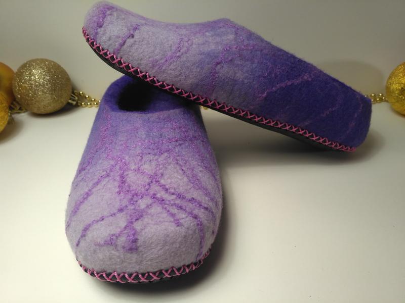 Тапочки сваляны вручну з вовни мериноса. Підшиті натуральною шкірою. Підошва укріплена додатковим повстю. Повністю ручна робота. Такі тапочки можна носити у всі сезони.Вовна володіє лікувальними властивостями, тому такі тапочки краще носити на босу ногу. Знімають втому, масажують стопу, нога зовсім не потіє. Хто хоч раз спробував носити взуття повстяну - ніколи від неї не відмовиться. Це чудовий подарунок собі та близьким.