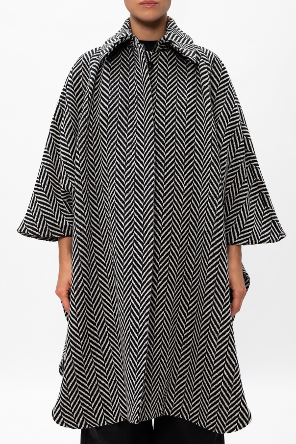 Black and white patterned coat from Stella McCartney. Crafted from wool, this item features buttons with a concealed placket and two slip pockets.
