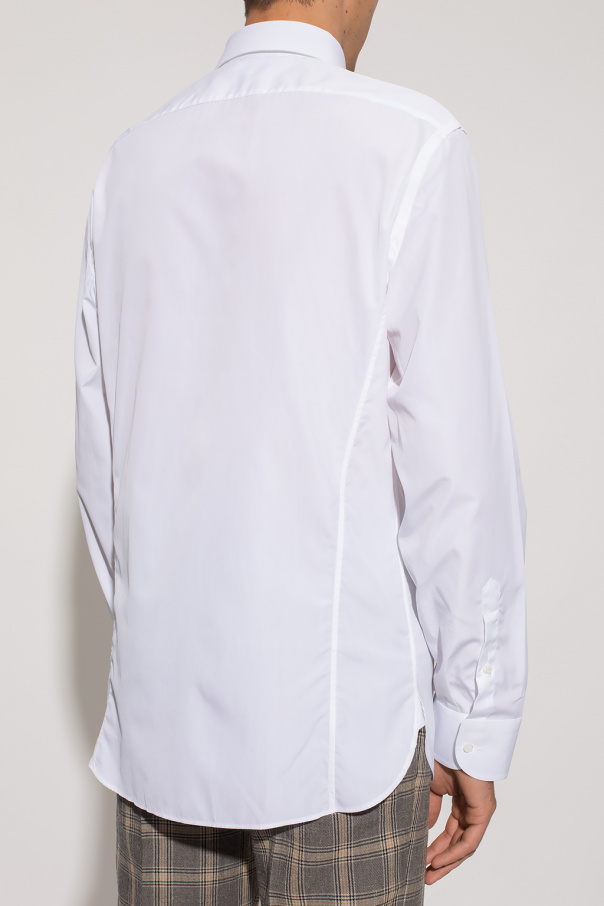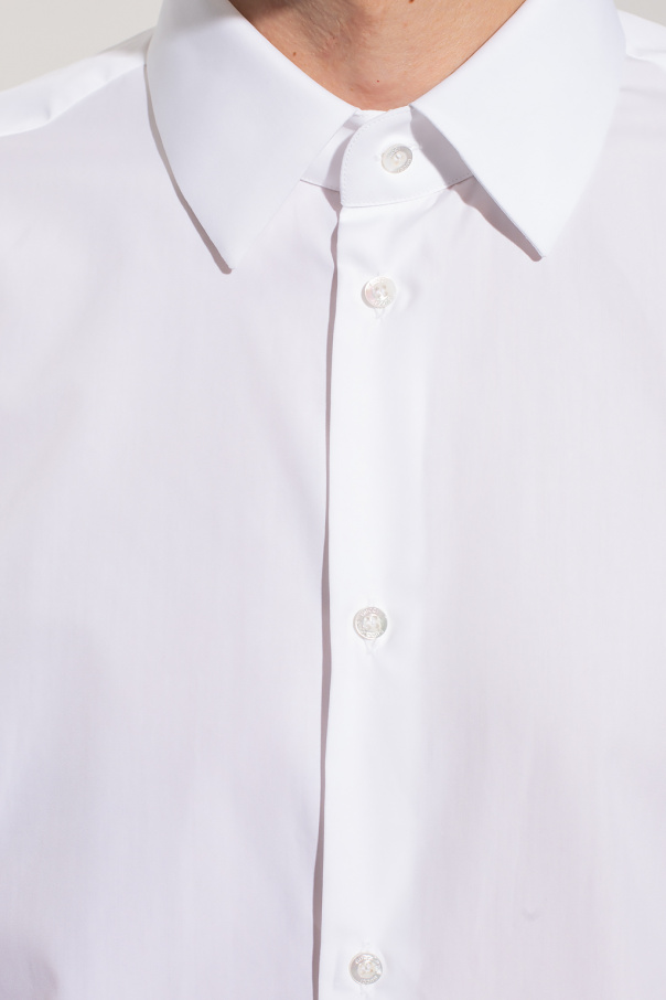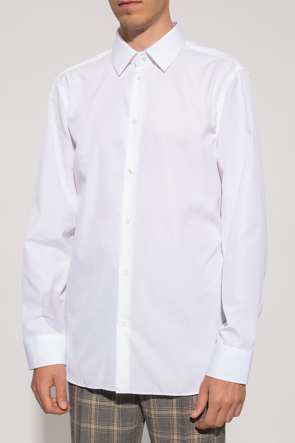 White shirt from Gucci. Made of cotton, this garment features button fastenings, embroidered GG motif and long sleeves with buttoned cuffs.