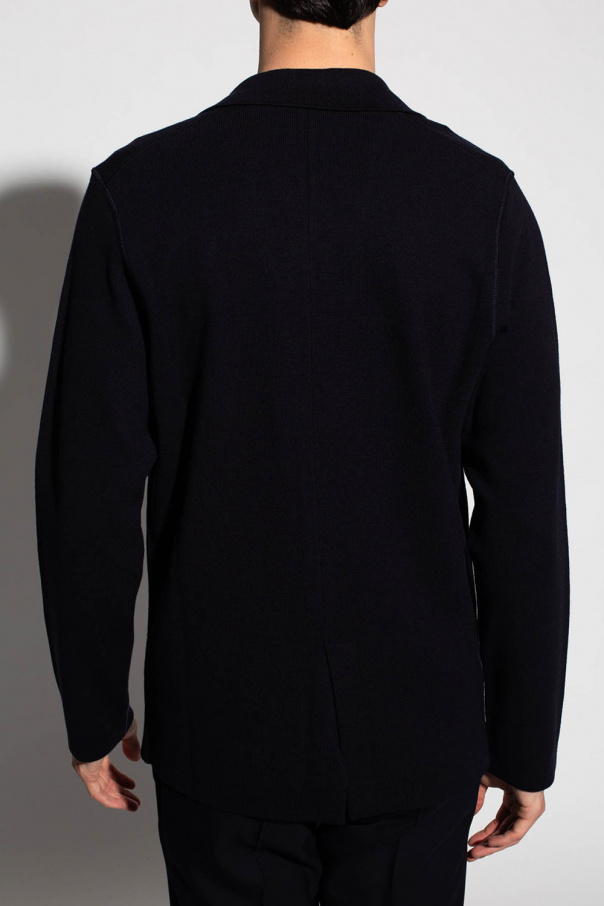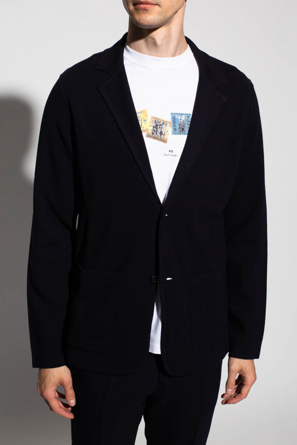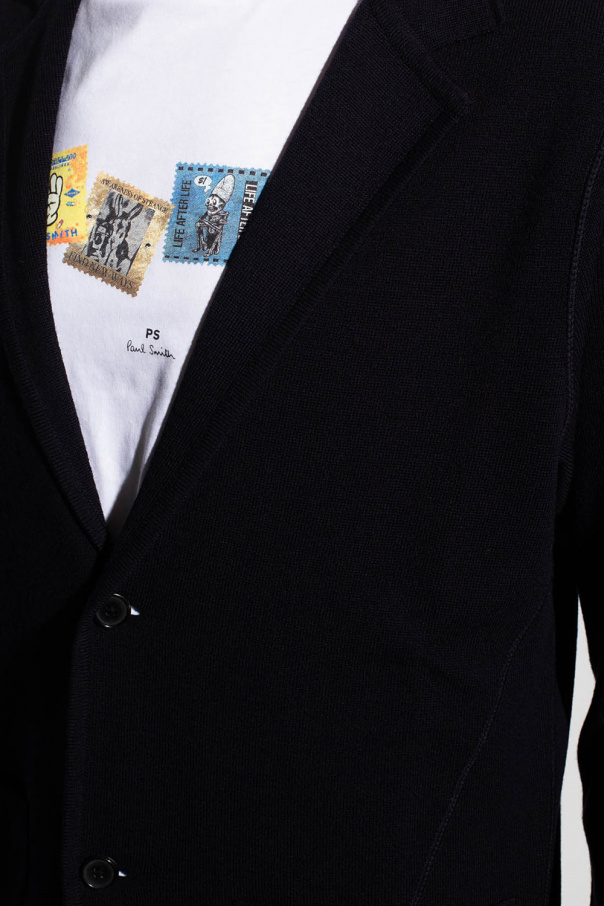 Navy blue blazer from PS Paul Smith. Knitted from wool, this style fastens via two buttons and features two slip pockets.