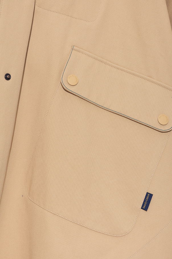 Beige cape from See By Chloe. Made of cotton, this style features logo-embossed snap closures and three snap-fastened pockets on the front – two flapped ones.