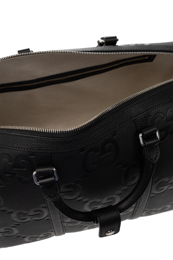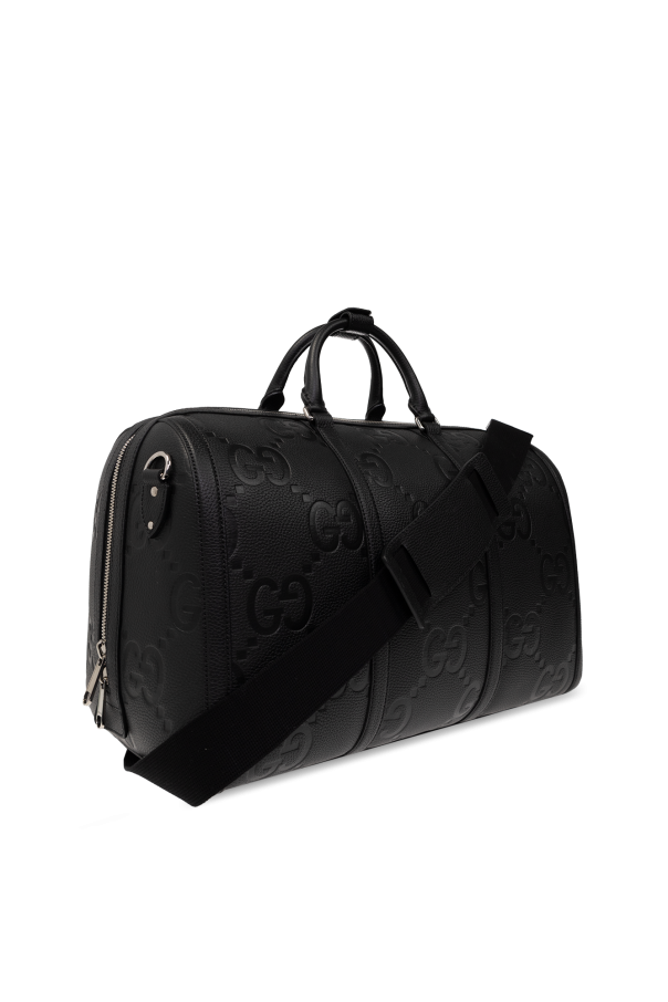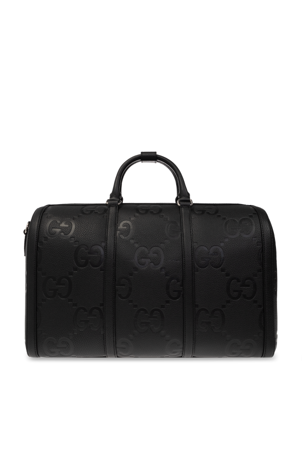 Black duffle bag from Gucci. Made of leather with the Jumbo GG pattern, this model features a two-way zip, two half-round handles, silver-tone metal hardware and one internal compartment with two zip pockets.