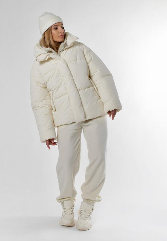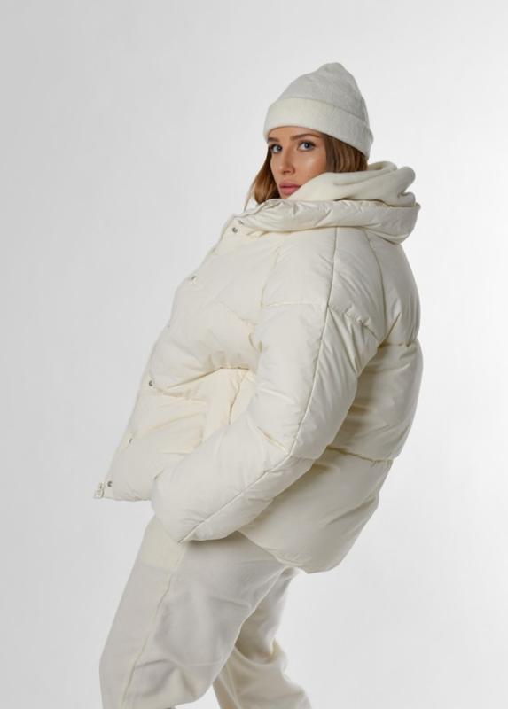 Короткий жіночий пуховик у спортивному стилі.