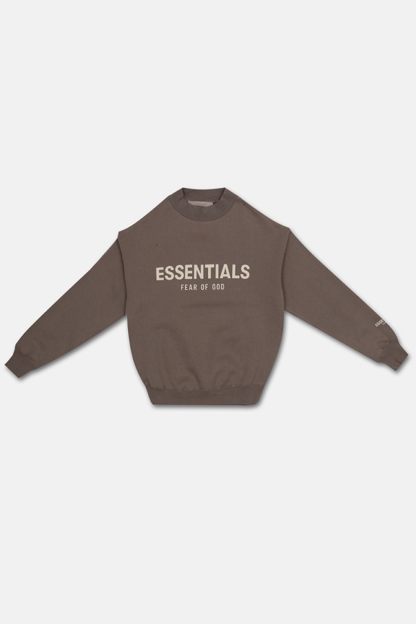 Greyish beige sweatshirt from Fear Of God Essentials Kids. Made of cotton, this garment features a cream logo with a velvet finish, rubber logo patch in black and ribbed trims at the crew neck, hem and cuffs.