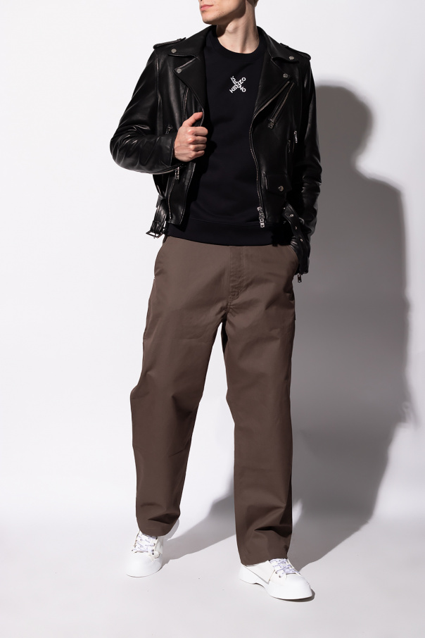 Black crewneck sweatshirt from Kenzo. Made of cotton, this garment is enriched by a white logo print and ribbed trims.