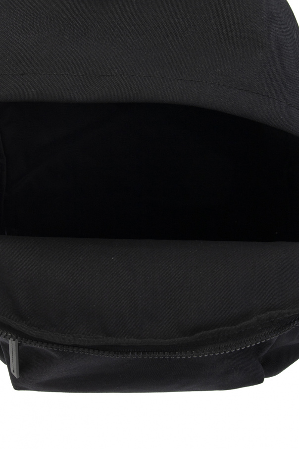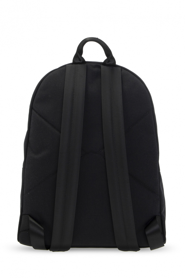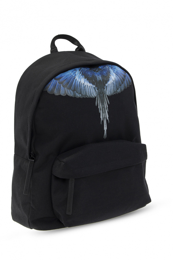 Black backpack from Marcelo Burlon. This model features a zip-around fastening, black, blue and white print, front zip pocket, adjustable straps, half-round handle and one internal compartment with one slip pocket.