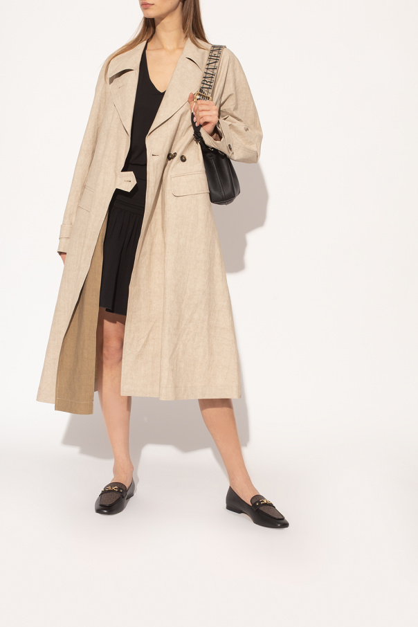 Black and brown \'Farrah\' loafers from Michael Michael Kors. Made of leather, this model features the brand\'s signature print, gold-tone logo hardware and a beige and black rubber sole.