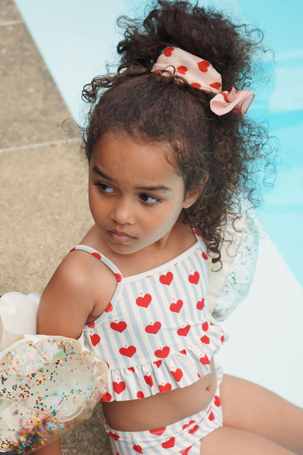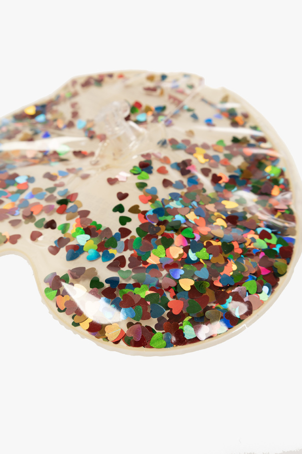 Transparent, heart-shaped water wings in cream from Konges Slojd. Crafted from durable PVC with colourful glitter and confetti inside.