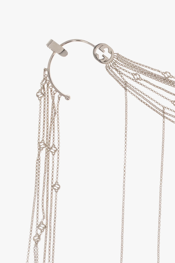 Silver-tone jewellery face mask from Gucci. Composed of cascading chains and GG logo details, this item is wrapped around the ears and features decorative fringes of different lengths.