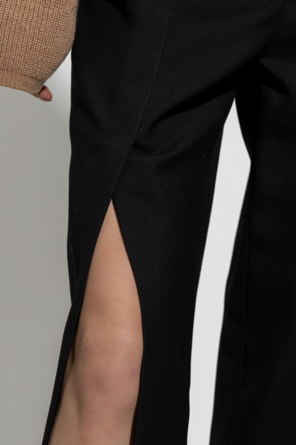Black ‘Charlie’ trousers from Burberry. Made from wool, this pair falls with wide legs with splits and features a zip fly with a button and hook, and three slip pockets.