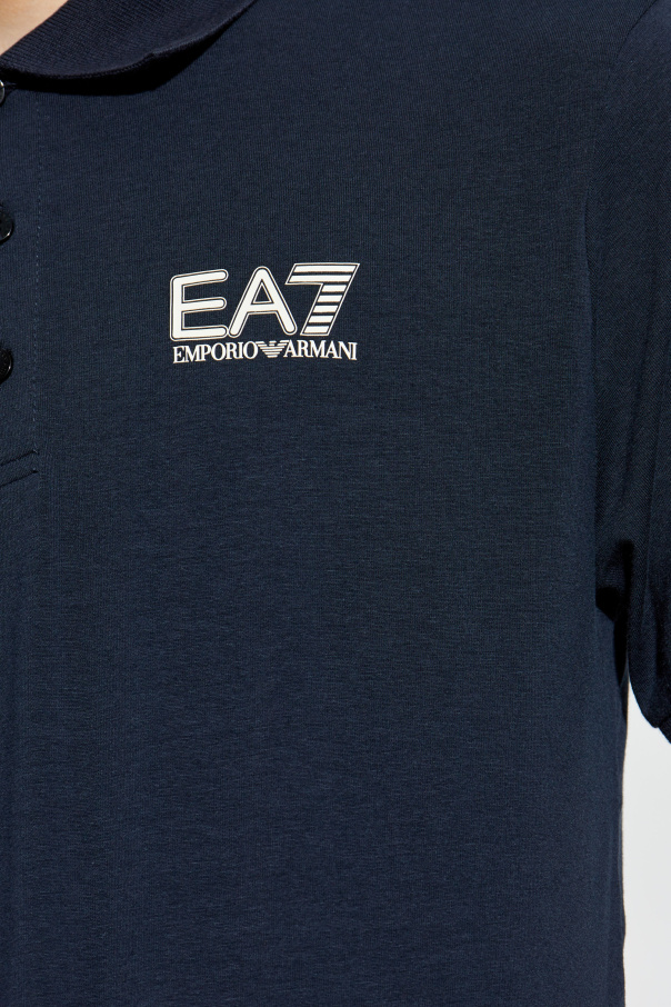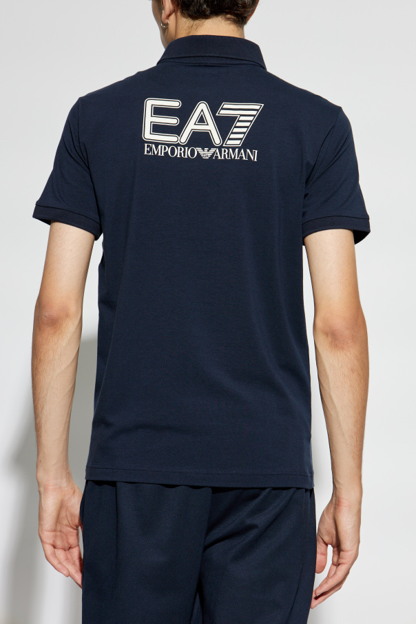 Introducing the Bawełniane Polo from the exclusive EA7 Emporio Armani collection—a seamless blend of sophistication and casual elegance. Crafted from premium-quality cotton with a hint of elastane, this navy polo epitomizes refined leisurewear. The classic polo cut features short sleeves and a neatly tailored collar, complemented by a traditional three-button placket. The left chest boasts a subtle, yet iconic, white printed logo \"EA7 Emporio Armani,\" while a larger rendition adorns the upper back, affirming the polo\'s distinguished heritage. Finely ribbed sleeve cuffs enhance the polo\'s fit and lend an air of understated luxury. The rich navy hue and minimalist design make it versatile enough for both casual outings and more formal engagements. Why choose this product? Exquisite Material: High-quality cotton for supreme comfort and durability. Timeless Design: Classic polo cut with elegant ribbed cuffs. Brand Prestige: Iconic EA7 Emporio Armani logos for instant recognition. Versatility: Suitable for both casual and semi-formal occasions.
