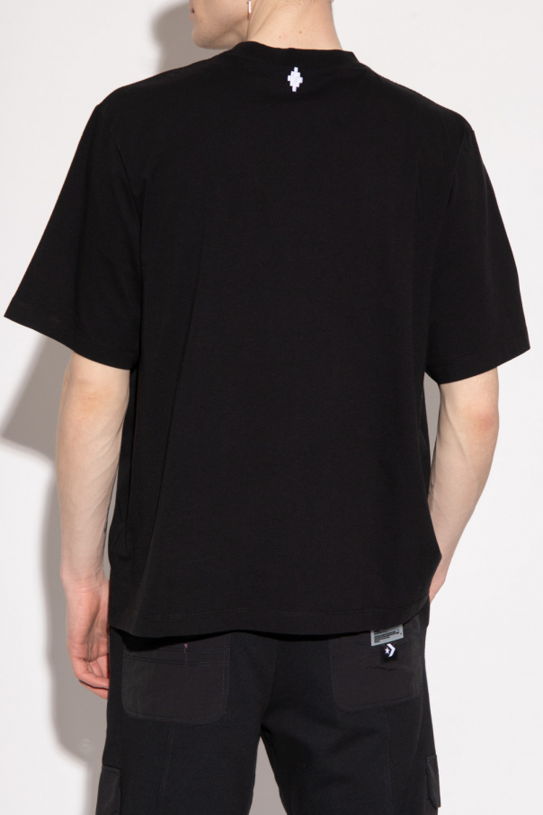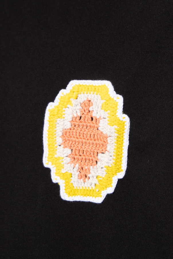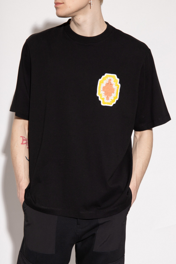 Black T-shirt from Marcelo Burlon. Crafted from cotton, this short sleeve design features a multicolored macramé logo patch and ribbed crew neck.