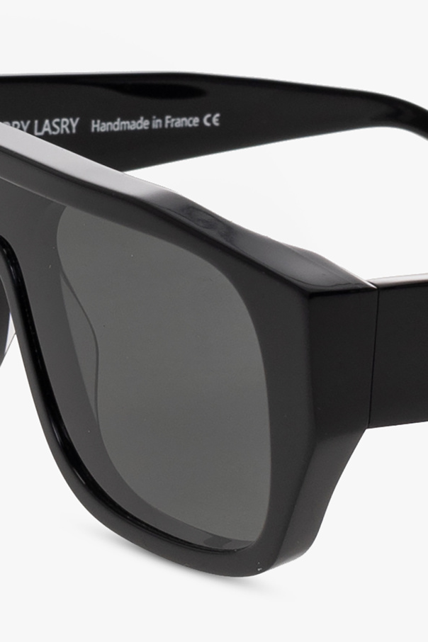 Black ‘Klassy’ sunglasses from Thierry Lasry. This pair has in an edgy futuristic retro style has a rectangular frame and dark grey lenses with 100% UV protection. Hand-crafted in France. Comes with a case.