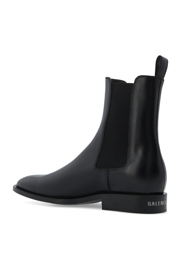 Black ‘Wallstreet’ chelsea boots from Balenciaga. Crafted from calf leather, this pair features elastic side panels, a heel printed with a white logo and black rubber sole.