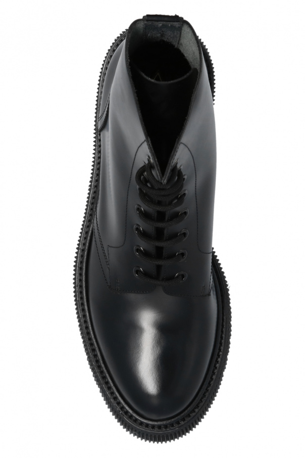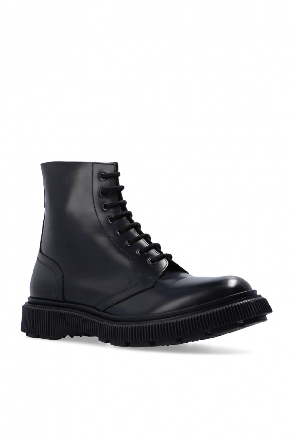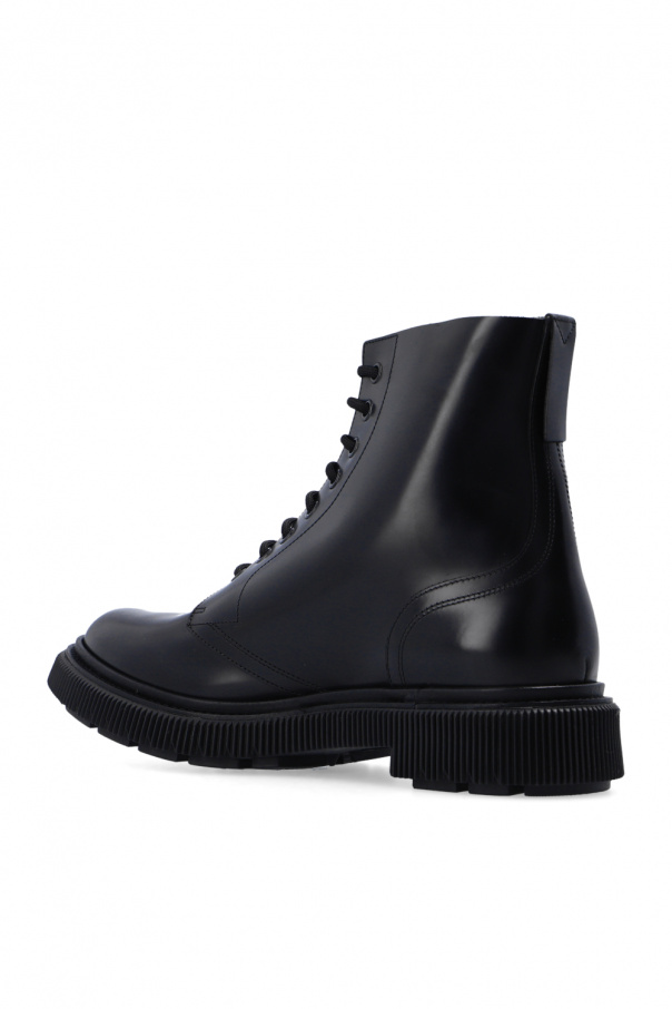 Black high-top ankle boots from Adieu Paris. Made of leather, this lace-up pair features an almond toe and a black rubber sole.