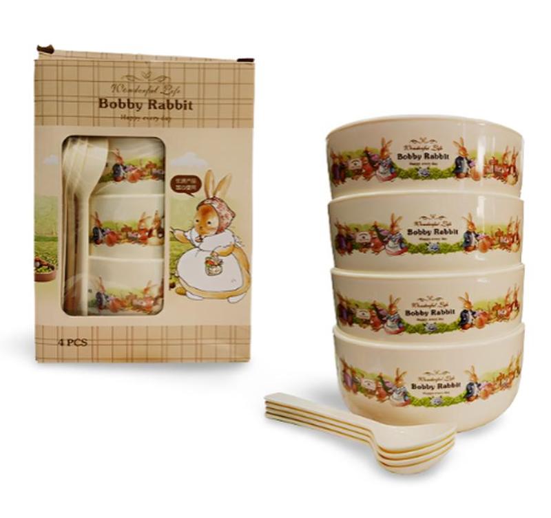 Детский набор посуды Bobby Rabbit, 4 тарелки с ложечками