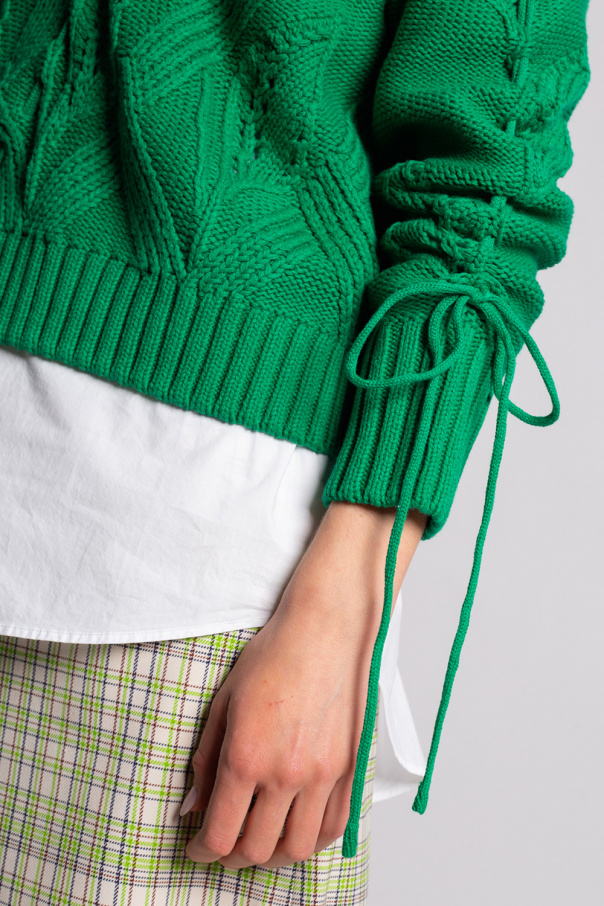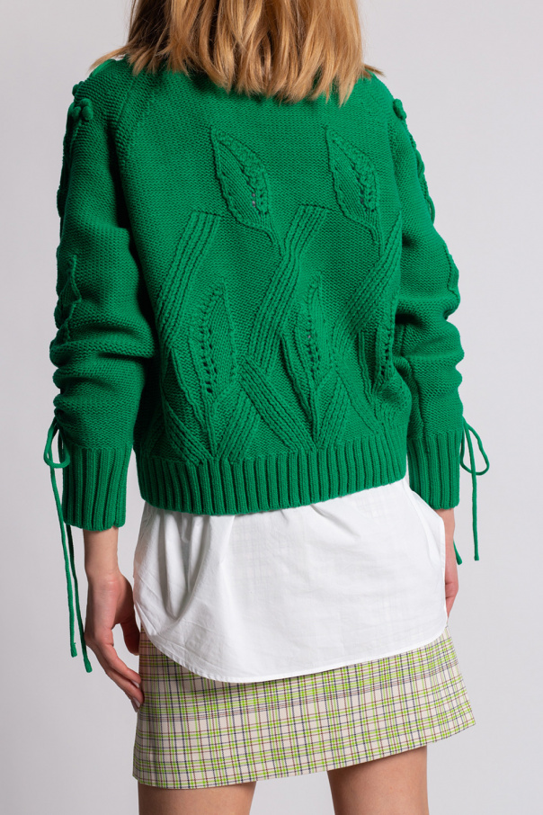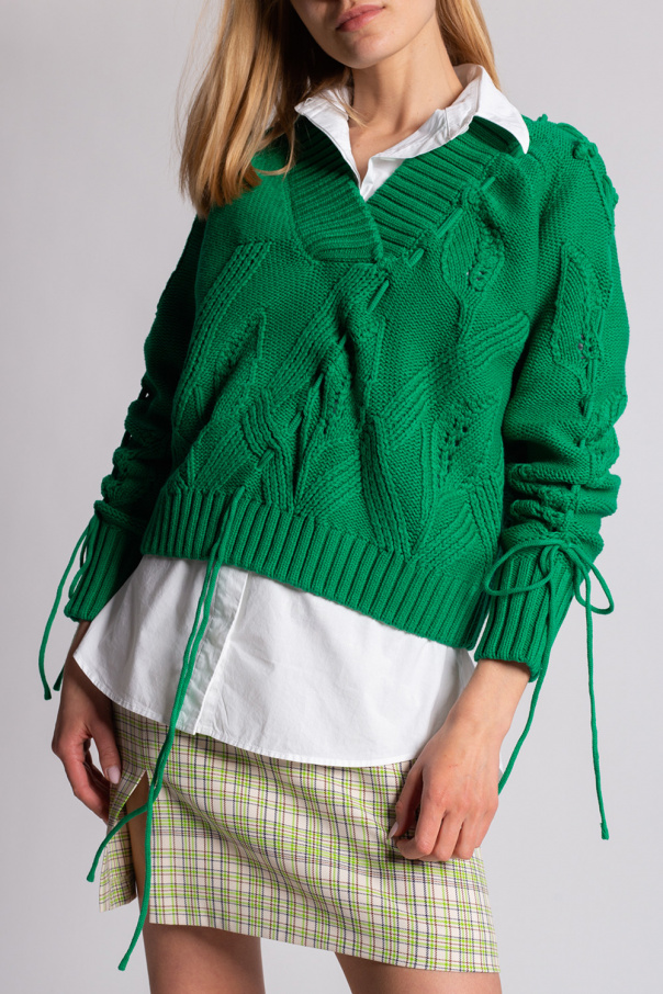 Green ribbed sweater from Holzweiler. Made of cotton, this V-neck design features stitching details and ribbed trims at the neck, hem and cuffs.