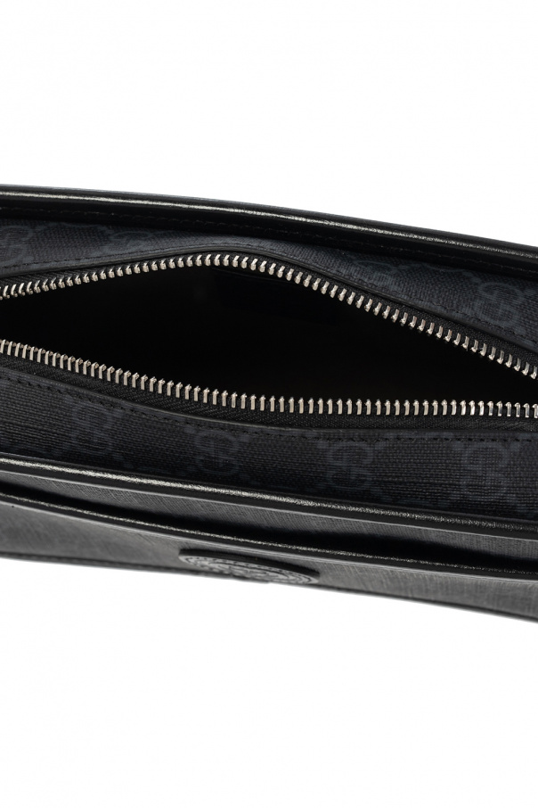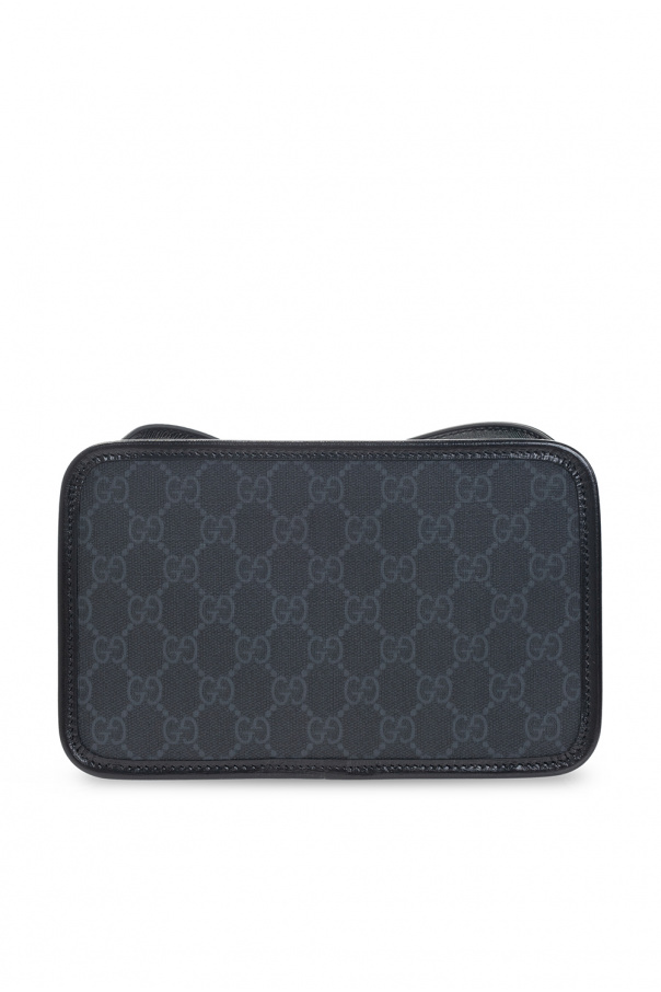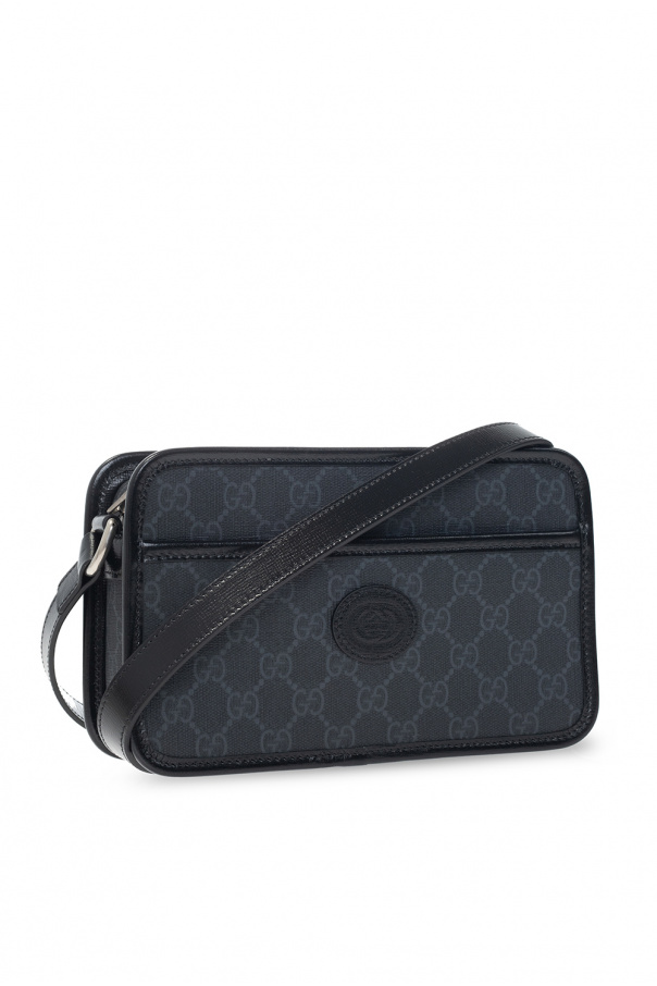 Black and dark grey ‘GG Retro Mini’ shoulder bag from Gucci. Crafted from calf leather with GG Supreme canvas, this model fastens with a zip and is decorated with a leather logo patch. It is complete with a front slip pocket, adjustable shoulder strap, silver-tone metal hardware and one internal compartment with a snap-fastened pocket.