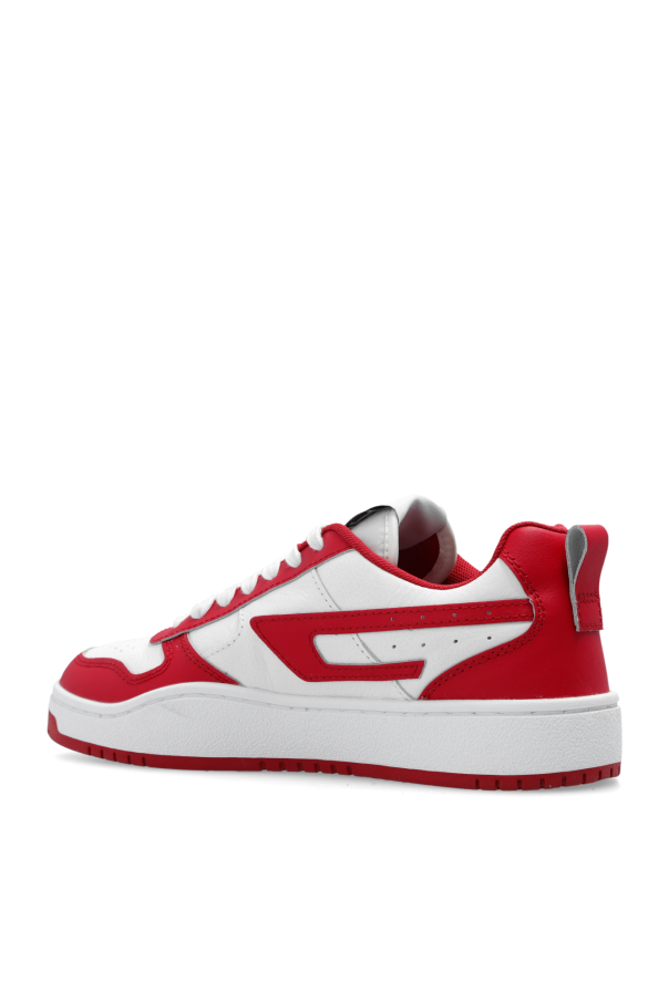 Red and white ‘S-UKIYO’ sneakers from Diesel. Made from cow leather, this lace-up model sits on a red and white rubber sole and features a logo patch and perforations.