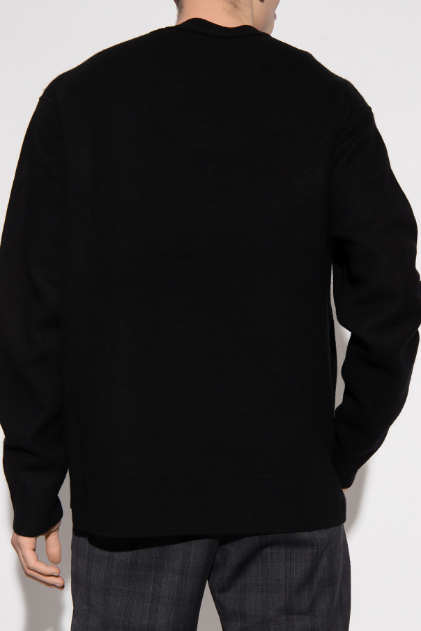 Black ‘Madden’ sweater from AllSaints. Made of merino wool, this long sleeve design has ribbed trims at the neck, hem and cuffs.