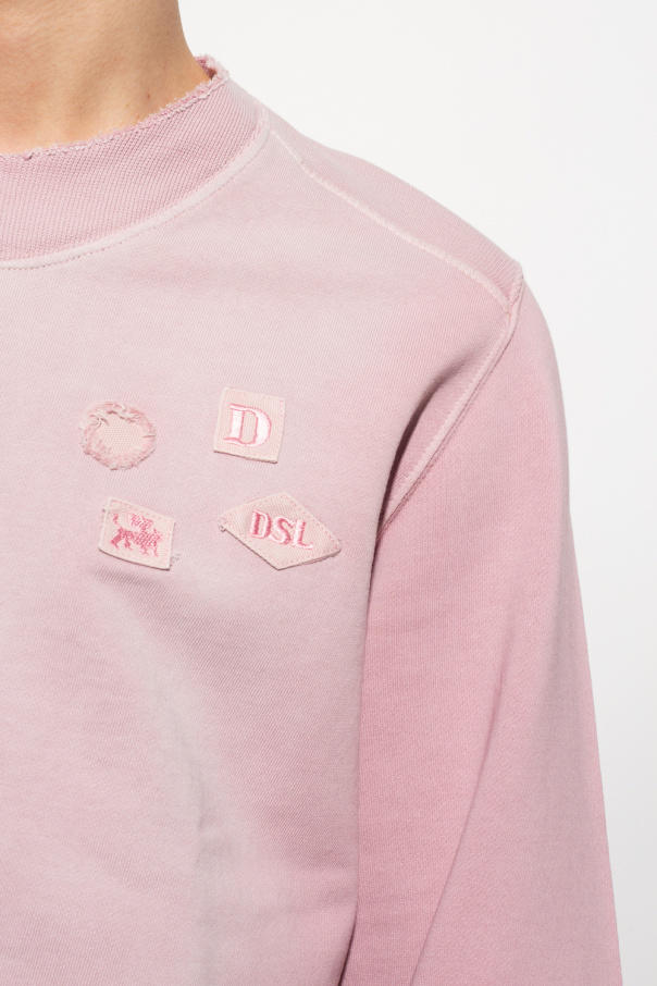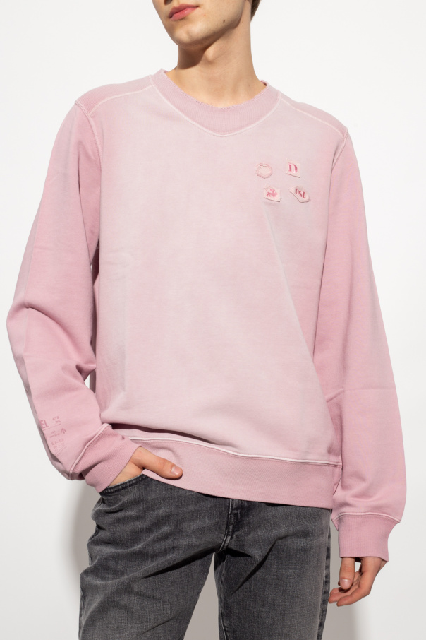 Pink ‘S-Manny’ sweatshirt from Diesel. Made of cotton, this garment is enriched by a faded effect, logo patches and ribbed trims at the crew neck, hem and cuffs.