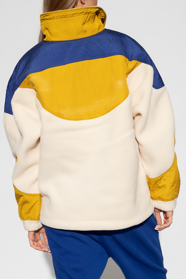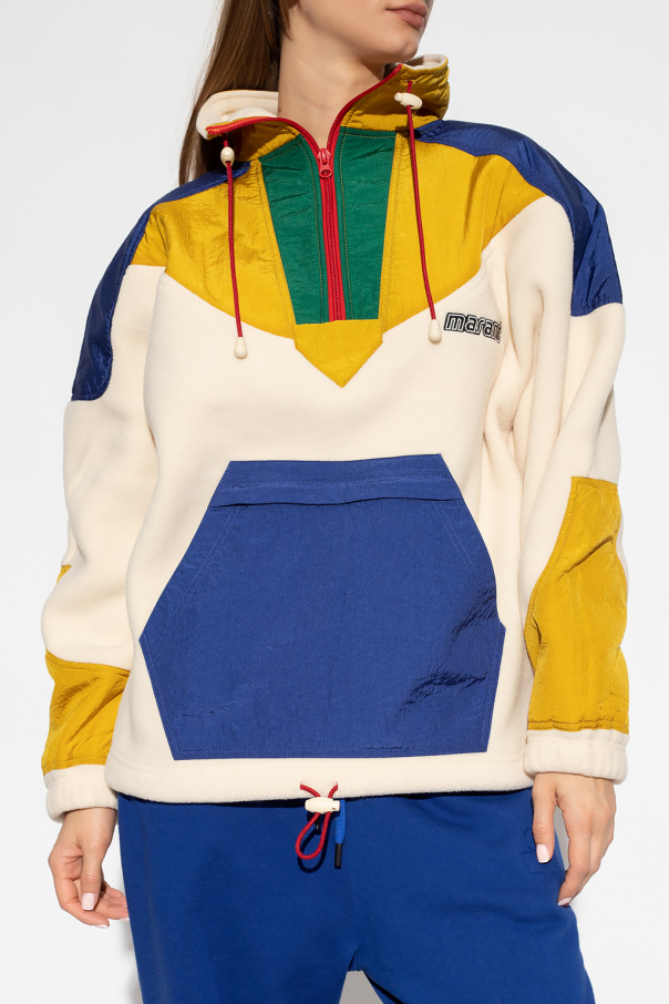 Multicolored ‘Mantsyni’ fleece sweatshirt from Isabel Marant Étoile. Made partially from recycled materials, this design features a stand collar with a zip and drawstrings, logo patch, one zip pocket, one slip pocket, drawstring hem and long sleeves with ribbed cuffs.