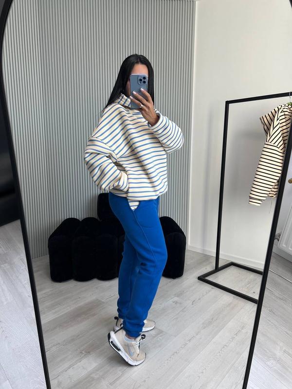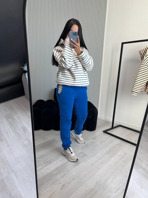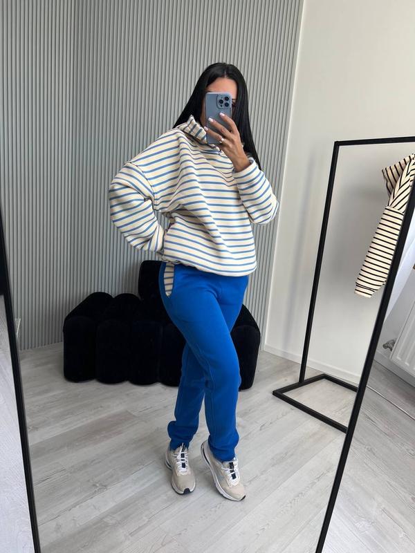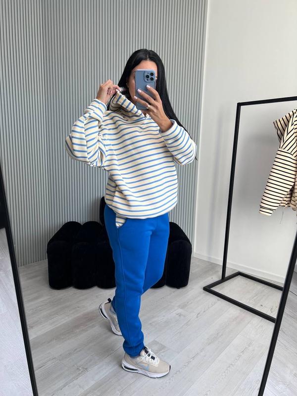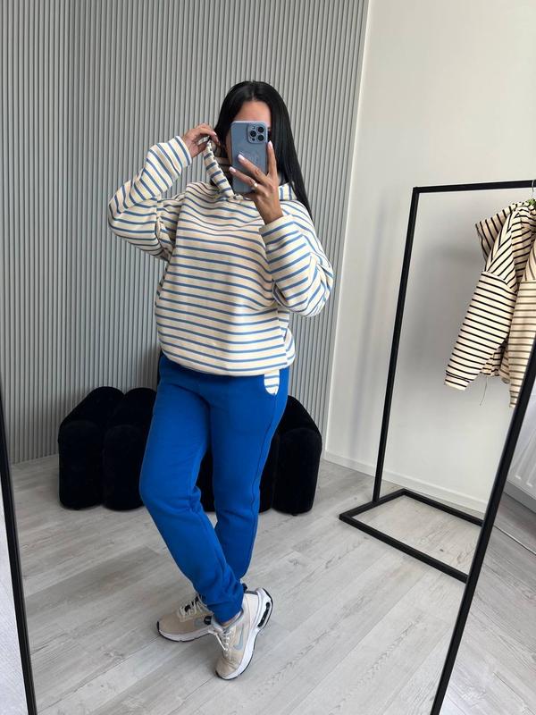 Костюм жіночий теплий з бавовни на флісі худі в полоску