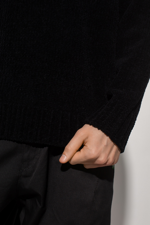 Black sweater from Undercover. Made of cotton, this garment is enriched by ribbed trims at the round neck, hem and cuffs.