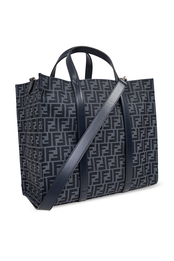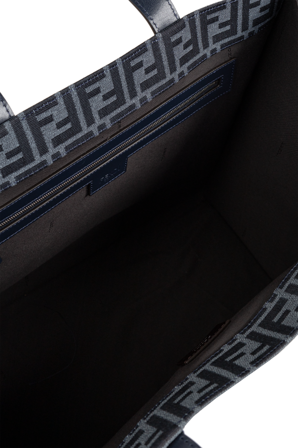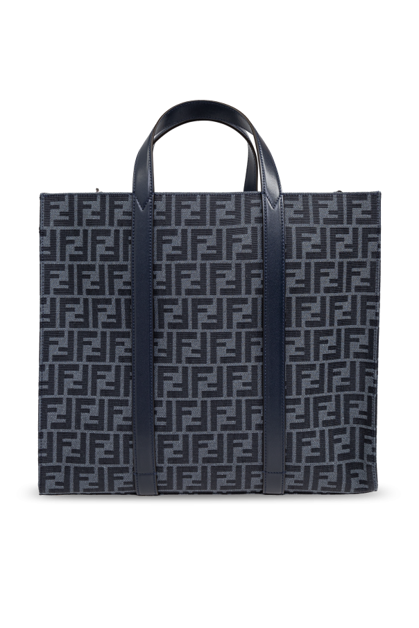 Introducing the epitome of luxury and functionality - the Fendi Monogram Shopper Bag. Crafted with precision, this exquisite piece boasts a rectangular silhouette accentuated by geometric vertical and horizontal lines, creating an alluring structure. The bag\'s prestigious navy hue, adorned with a lighter navy monogram pattern, echoes the distinctive signature of luxury brands. Constructed from a blend of high-quality materials, including resin, cotton, polyester, and calfskin leather, this shopper bag is not only durable but also exudes elegance. It features two handles for hand carrying and comes with a long, adjustable, and detachable strap, offering versatility as a shoulder or cross-body bag. The meticulous stitching and subtle, color-coordinated edges and trims enhance the bag\'s sophisticated aesthetic. The interior reveals a spacious compartment with an open inner pocket, ensuring ample storage capacity. The deep navy fabric lining maintains a coherent color scheme, further complemented by a close-up of the monogram pattern showcasing the texture and quality, crucial for verifying authenticity among exclusive brands. Additionally, it includes a zippered pocket for secure storage, making it not only a statement of style but also a practical accessory for everyday elegance. Why Purchase This Product? Distinguished Fendi design and craftsmanship. Luxurious blend of resin, cotton, polyester, and calfskin leather. Versatile carrying options with adjustable and detachable strap. Ample storage with an open inner pocket and a zippered compartment. Authenticity verified by monogram pattern quality and texture.