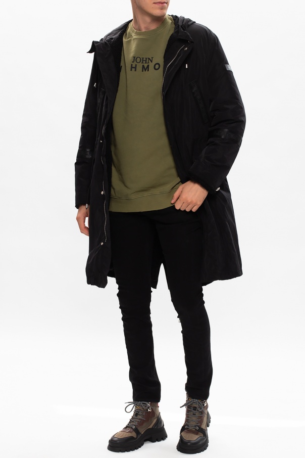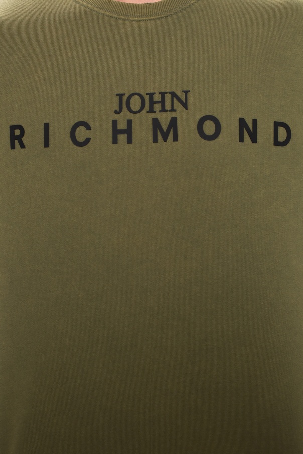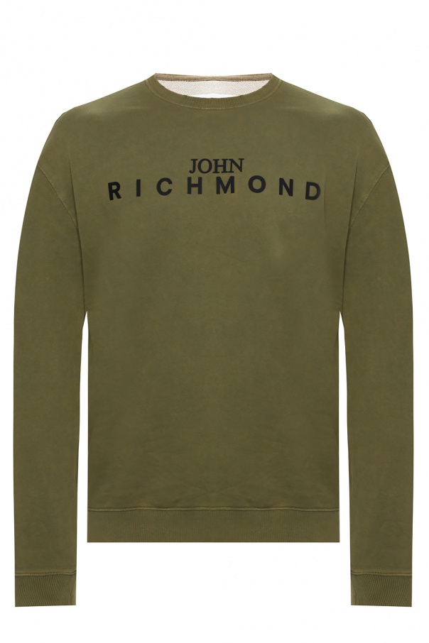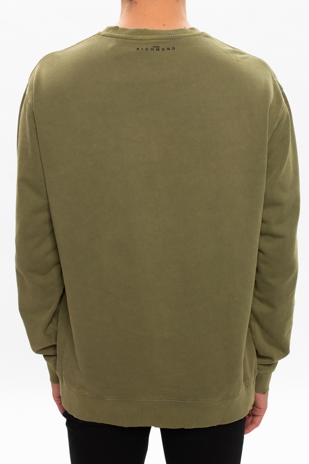 Green crewneck sweatshirt from John Richmond. Cut from distressed cotton jersey in regular fit, this style comes with a black rubberised logo appliqué and rib trims.