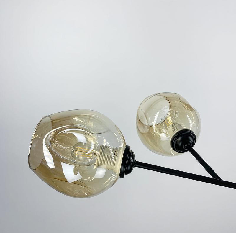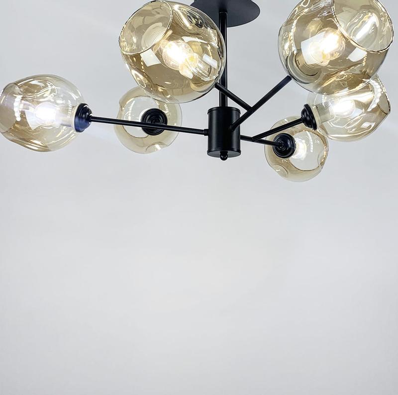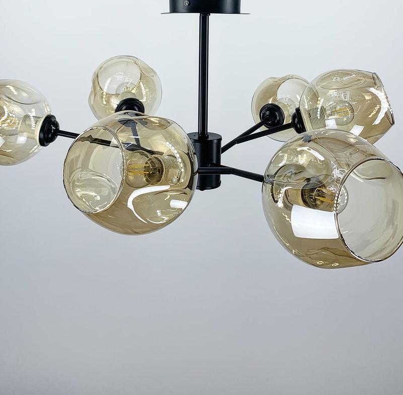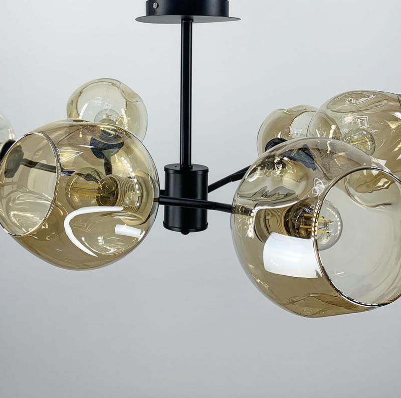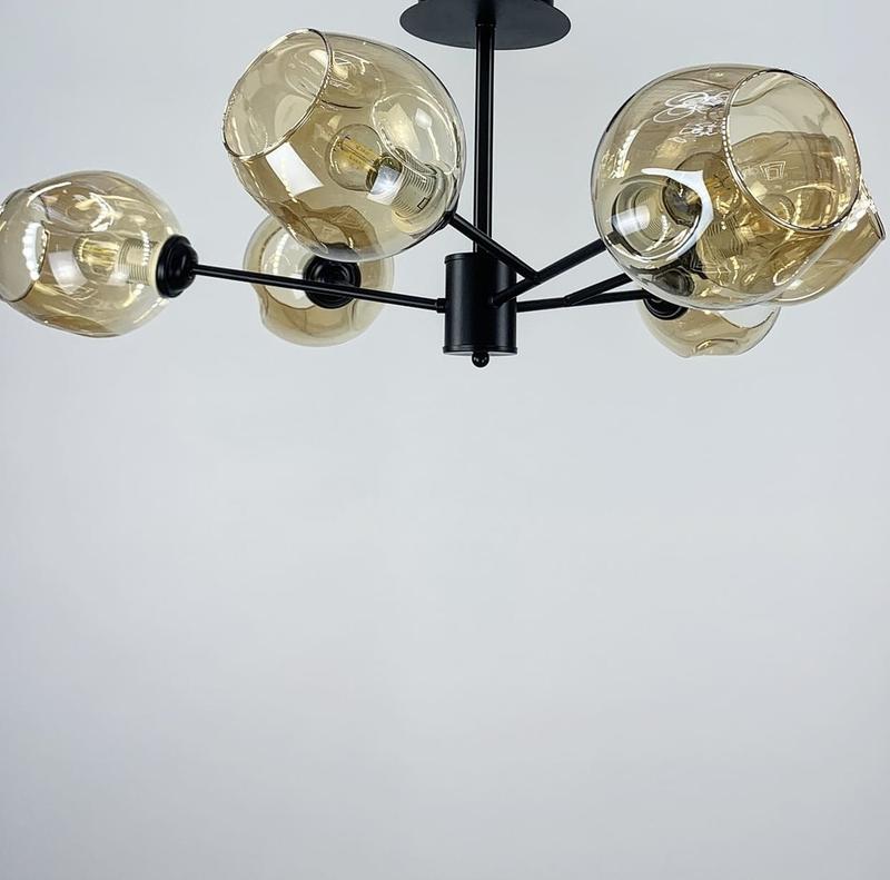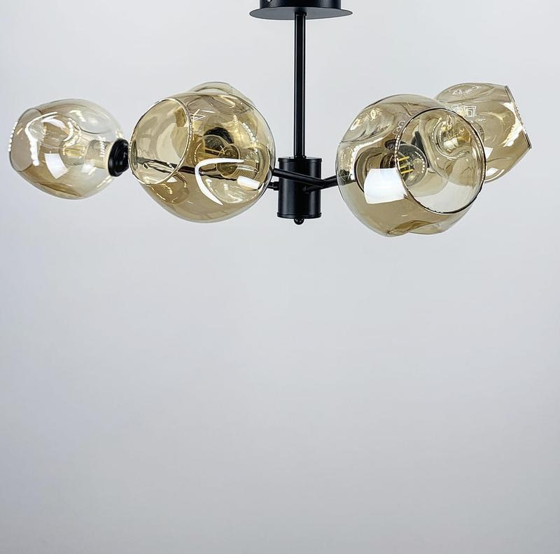 Стельова люстра з чарівними відкритими плафонами кольору янтарх в корпусі