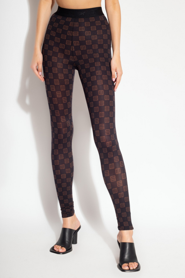 Black leggings from Ambush. Embellished with a brown monogram print, they feature a branded waistband.