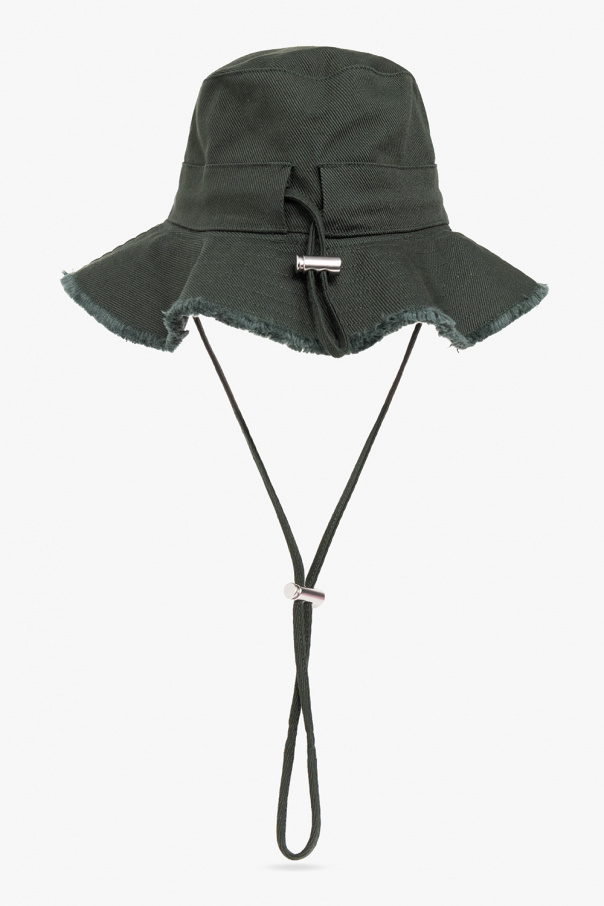 Dark green from Jacquemus. Made from cotton, this item features an adjustable chin drawstring closure, back drawstrings with a logo-engraved toggle, a silver-tone metal logo application on the front, and raw trims.